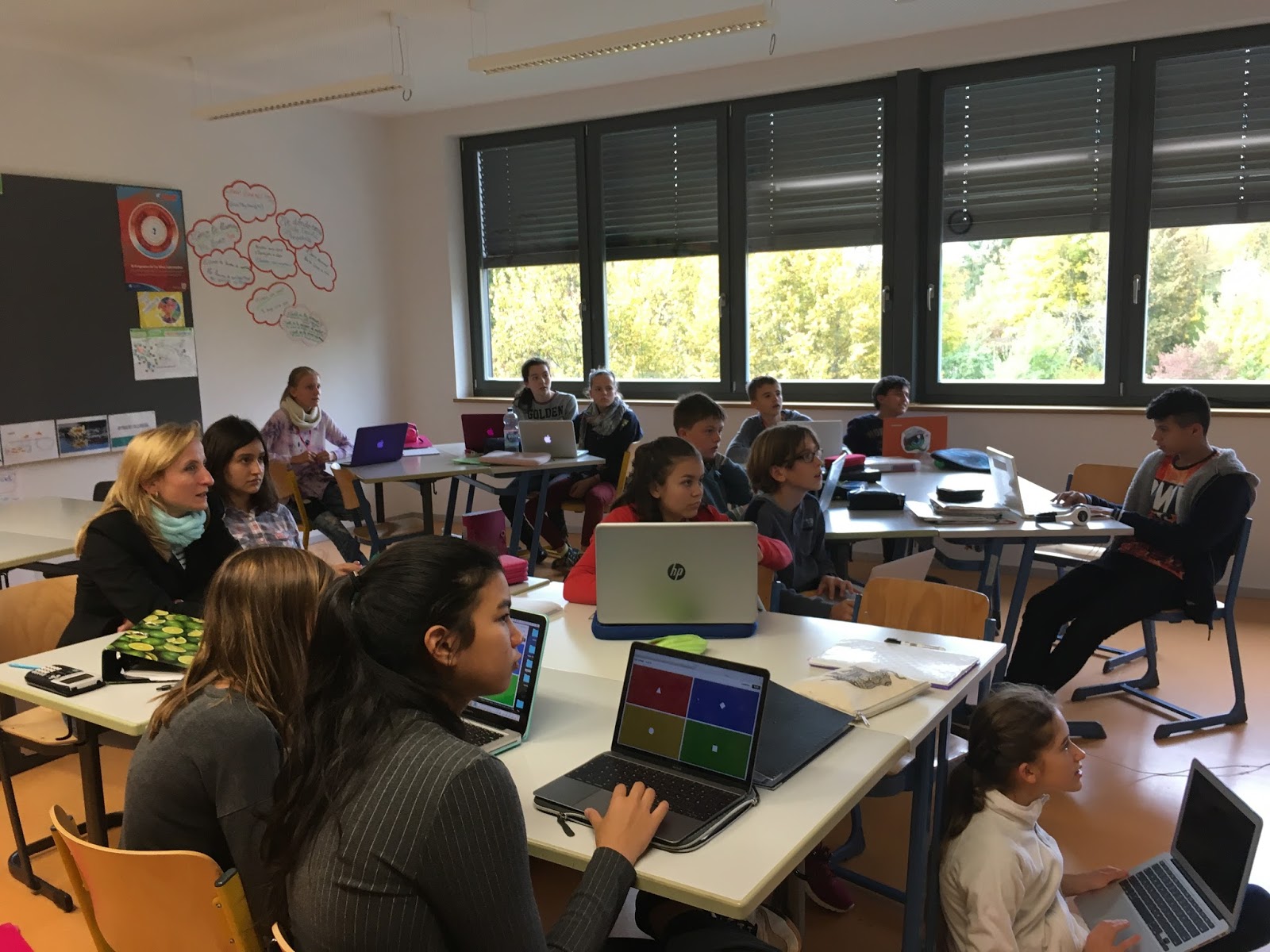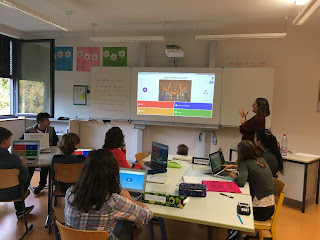 Buenas a todos y a todas o como por aquí dicen GUTEN ABEND. Iniciamos el día con energía y frio, muuuucho friiio. Al llegar al cole, hemos ido a clase de Anja, ella es la coordinadora de TIC aquí. Nos ha mostrado el proyecto que está realizando con sus alumnos de grado 9 que consiste en filmar películas de temática libre, para realizar el montaje utiliza un programa llamado WEVIDEO.COM.