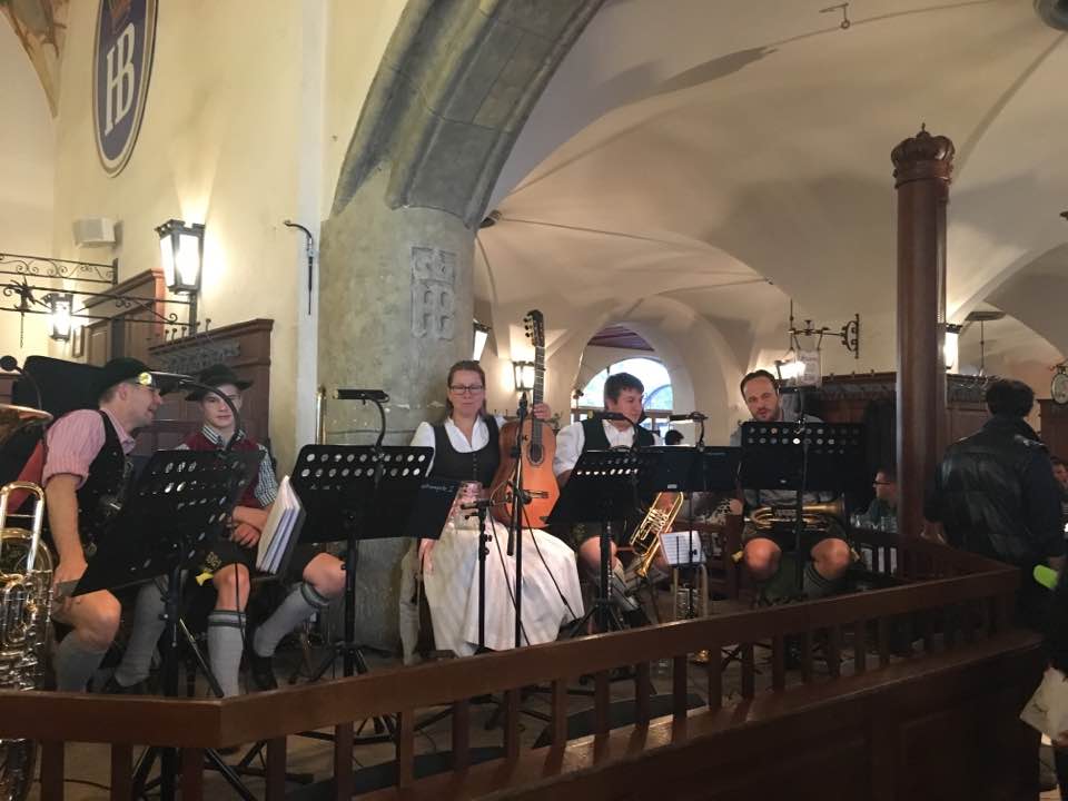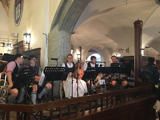 Después de comer nos hemos acercado a la cervecería mas importante de Munich la cervecería Hofbrauhaus que permanece abierta desde 1958, mas que una cervecería es un museo, repleto de gente , música Babiera en directo , nos ha parecido muy curioso que los camareros van vestidos con el traje regional.