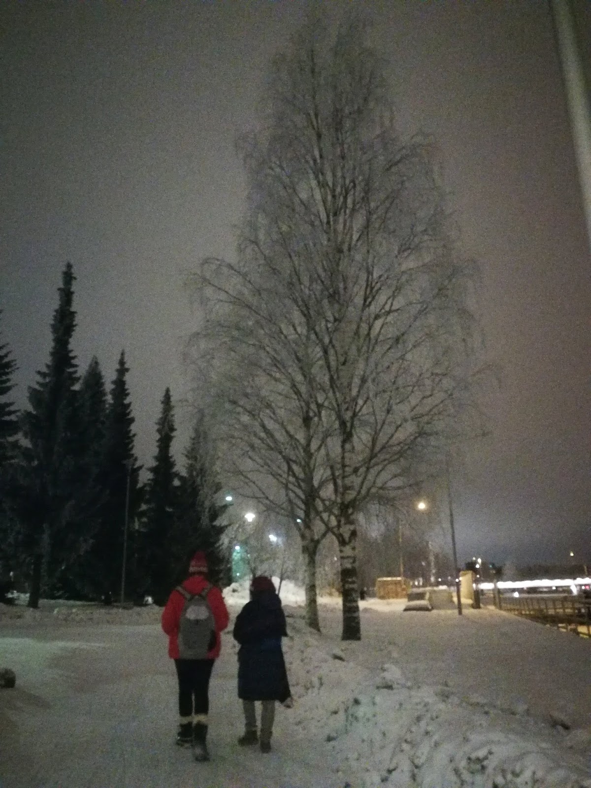 Al finalizar las clases, hemos aprovechado para conocer Joensuu por nuestra cuenta recorriendo la ribera del río. Mucha nieve y una blanca escarcha que cubría los árboles hacia de este un paisaje espectacular.