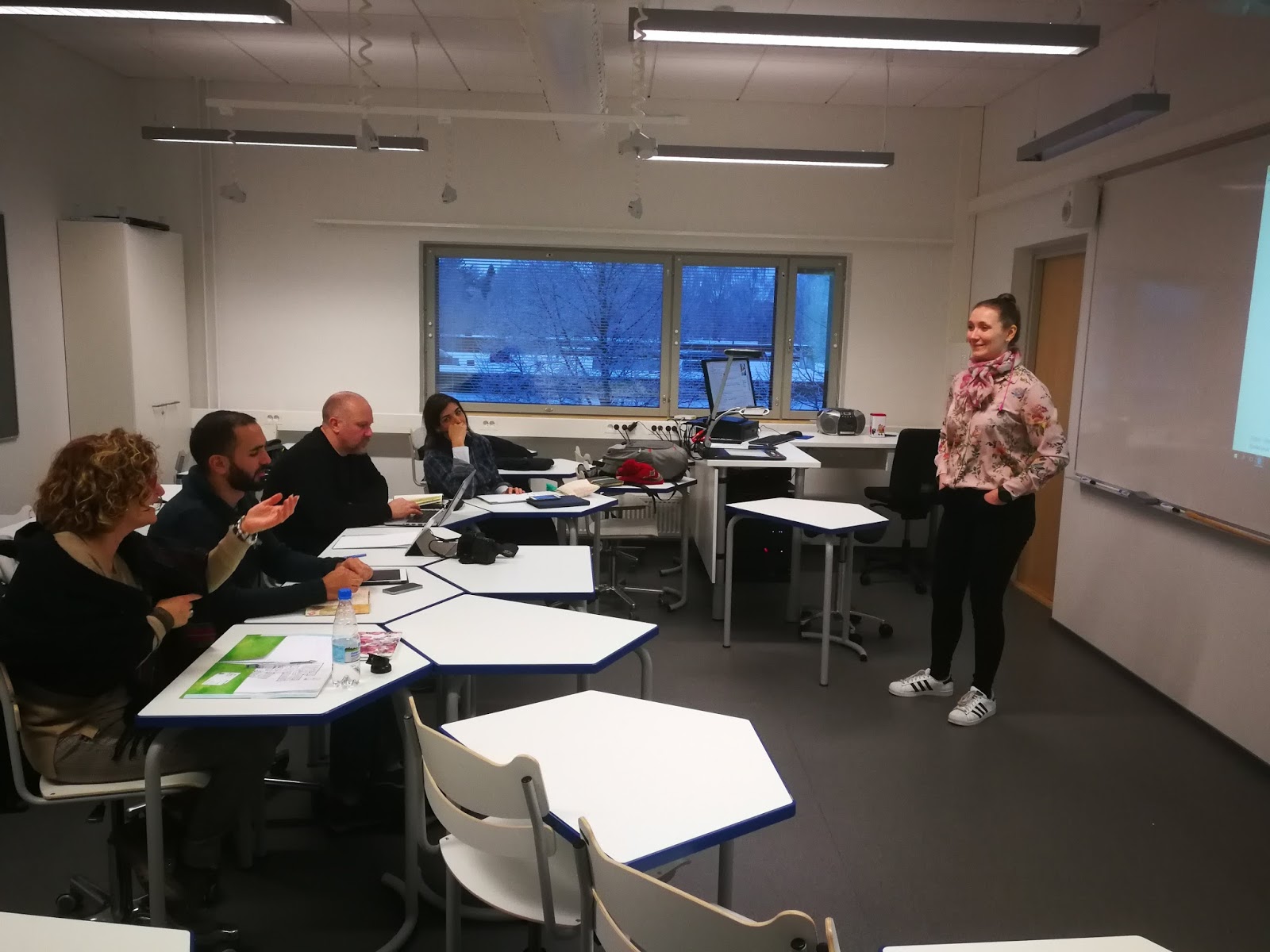 La jornada de la tarde ha transcurrido en nuestro instituto de referencia con Mrs Maria Petrelius, que se va a encargar de darnos la formación sobre realidad virtual en las clases y cuyos módulos han comenzado hoy. Petrelius nos ha hecho reflexionar sobre el pasado y el presente de la tecnología y el futuro de nuestros alumnos.
