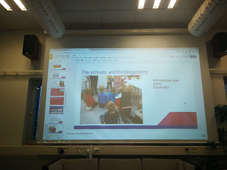 En el Centro nos esperaba Mrs Petrelius que nos ha acompañado a la sala de profesores para estar más cómodos y sentados en los sofás, hemos hablado de la tecnología, sus prestaciones en las aulas y de cómo éstas deben facilitarnos la vida y no esclavizarnos.